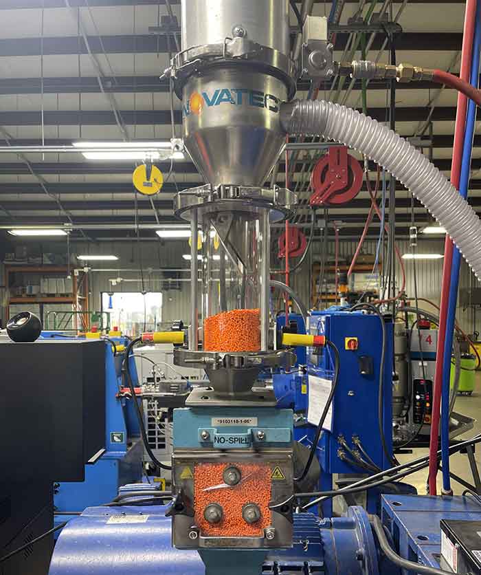 - 운송 컨테이너에서 건조기로, 그리고 사출 성형기로 펠릿화된 수지를 이송하는 폐쇄 루프 자재 취급은 오염 위험을 최소화합니다. 또한 견고한 이송 시스템은 재료의 건조도를 정확하게 유지합니다.