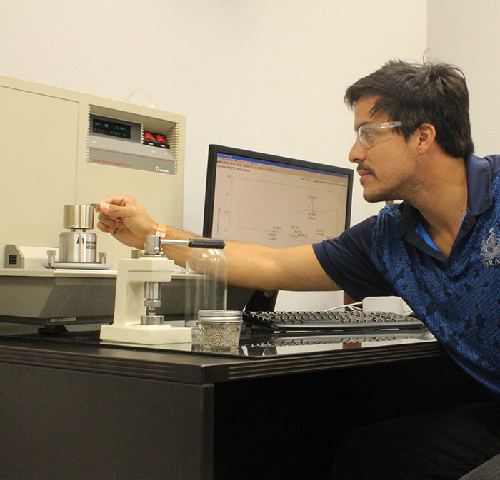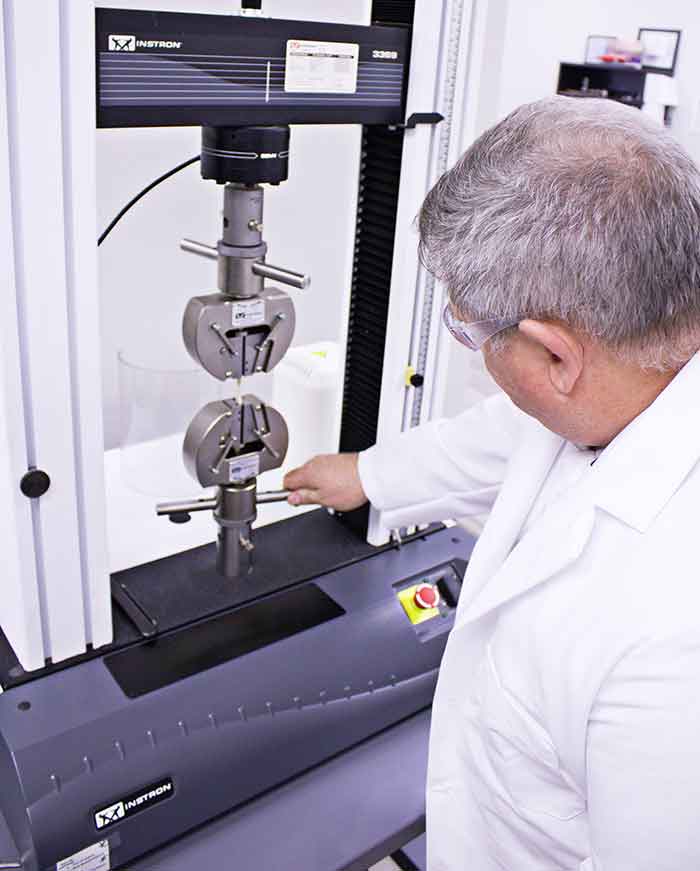 - 필요한 경우 수지 로트 및 부품의 기계적 특성을 검증하는 범용 ASTM 시험기